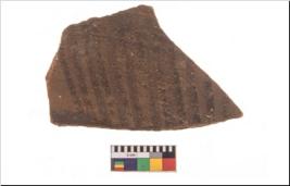 | Description / विवरण | Specimen of potsherd with black decorative geometric painting. Type Black on Red Ware . |