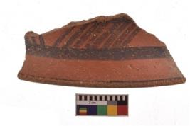 | Description / विवरण | Specimen of black on red ware with decorative geometric Outcurved lines painting. |