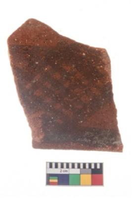 | Description / विवरण | Specimen of potsherd with black decorative geometric painting . |