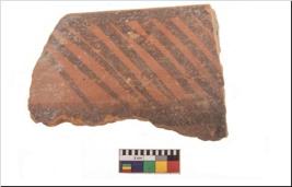 | Description / विवरण | Specimen of potsherd with black decorative geometric painting. Type Black on Red Ware . |