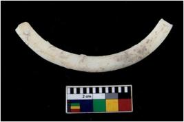 | Description / विवरण | Fragment of an undecorated shell bangle. It is creamish in colour and rectangular in cross section. |