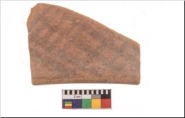 | Description / विवरण | Specimen of potsherd with black decorative geometric painting. Type Black on Red Ware . |