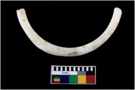 | Description / विवरण | Fragment of an undecorated shell bangle. It is creamish in colour and rectangular in cross section. |