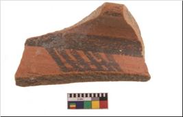 | Description / विवरण | Specimen of potsherd with black decorative geometric painting. Type Black on Red Ware . |