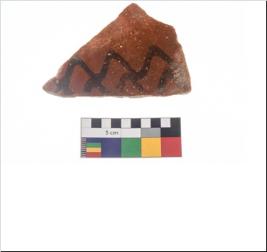 | Description / विवरण | Specimen of potsherd with black decorative geometric painting . |
