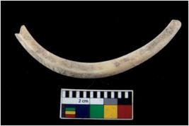 | Description / विवरण | Fragment of an undecorated shell bangle. It is creamish in colour and rectangular in cross section. |