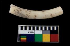 | Description / विवरण | Fragment of an undecorated shell bangle. It is creamish in colour and rectangular in cross section. |