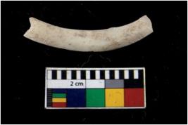 | Description / विवरण | Fragment of an undecorated shell bangle. It is creamish in colour and rectangular in cross section. |