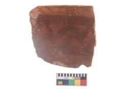 | Description / विवरण | Specimen of potsherd black on red painted pottery. It is fine fabric in sharp contrast with painted design are executed in black pigment. |