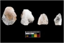 | Description / विवरण | Specimen of cores with visible weathered cortex and few broad fluted marks. Almost all are irregular in shape and size. Most of them are having sharp edges. |