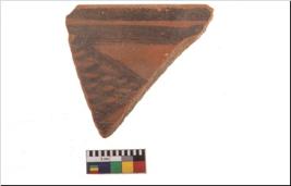 | Description / विवरण | Specimen of potsherd with black decorative geometric painting. Type Black on Red Ware . |