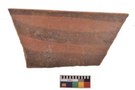 | Description / विवरण | Specimen of black on red ware with decorative geometric parallel lines painting. |
