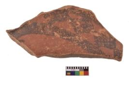 | Description / विवरण | Specimen of black on red ware with decorative geometric A row of latticed diamonds set in horizontal bands but having groups of oblique lines at intervals painting. |