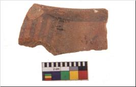 | Description / विवरण | Specimen of potsherd with black decorative geometric painting. Type Black on Red Ware . |