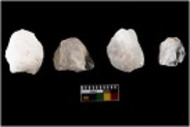 | Description / विवरण | Specimen of cores with visible weathered cortex and few broad fluted marks. Almost all are irregular in shape and size. Most of them are having sharp edges. |