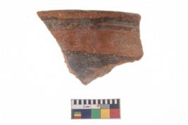 | Description / विवरण | .Specimen of potsherd with black decorative geometric painting . |