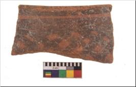 | Description / विवरण | Specimen of potsherd with black decorative geometric painting. Type Black on Red Ware . |