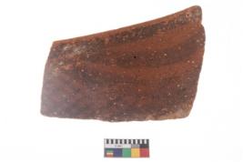| Description / विवरण | Specimen of potsherd with black decorative geometric painting . |