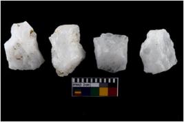 | Description / विवरण | There are n-4 of intact flake cores made up of Quartz. Some of them have bulge of percussion and some are flat flakes. |