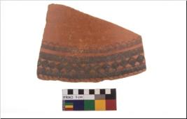 | Description / विवरण | Specimen of potsherd with black decorative geometric painting. Type Black on Red Ware . |