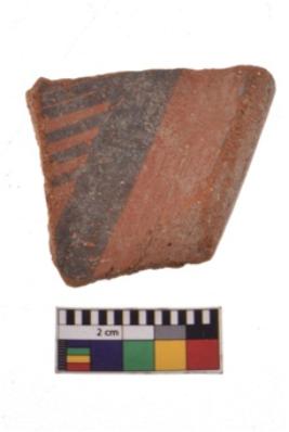 | Description / विवरण | Specimen of black on red ware with decorative geometric Outcurved lines painting. |
