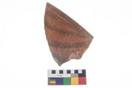 | Description / विवरण | Specimen of potsherd with black decorative geometric painting . |