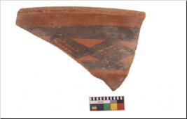 | Description / विवरण | Specimen of potsherd with black decorative geometric painting. Type Black on Red Ware . |