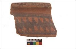 | Description / विवरण | Specimen of potsherd with black decorative geometric painting. Type Black on Red Ware . |