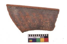 | Description / विवरण | Specimen of black on red ware with decorative geometric Outcurved lines painting. |