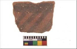 | Description / विवरण | Specimen of potsherd with black decorative geometric painting. Type Black on Red Ware . |