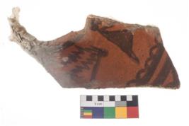 | Description / विवरण | Specimen of potsherd with black decorative geometric painting . |