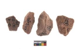 | Description / विवरण | It made up of a short flakes with sides trimmed. Marks of secondary flaking are present on the both the faces. It rained pebbly cortex on one side and irregular thin edge on the other. The dorsal is relatively flat. A patch of cortex near the section which is slanting to the dorsal .It is sub rectangular in shaped. |