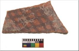 | Description / विवरण | Specimen of potsherd with black decorative geometric painting. Type Black on Red Ware . |