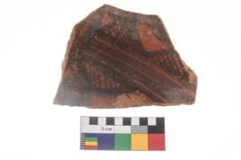 | Description / विवरण | Specimen of potsherd with black decorative geometric painting . |