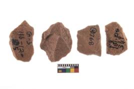 | Description / विवरण | It made up of a short flakes with sides trimmed. Marks of secondary flaking are present on the both the faces. It rained pebbly cortex on one side and irregular thin edge on the other. The dorsal is relatively flat. A patch of cortex near the section which is slanting to the dorsal .It is sub rectangular in shaped. |