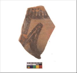 | Description / विवरण | Specimen of potsherd with black decorative geometric painting. Type Black on Red Ware . |
