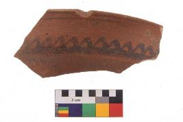 | Description / विवरण | Specimen of potsherd with decorative zigzag painting, Type Black on Red Ware . |
