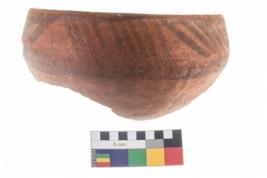 | Description / विवरण | Specimen of potsherd with black decorative geometric painting . |