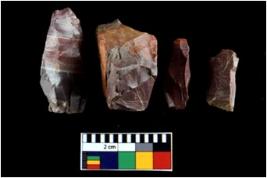 | Description / विवरण | There are n-4 core; almost all of them are of the same size . Three of them have almost blunt sides. One of the core have a flat base. Flakes removed from almost all the sides. |