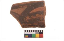 | Description / विवरण | Specimen of potsherd with black decorative geometric painting. Type Black on Red Ware . |