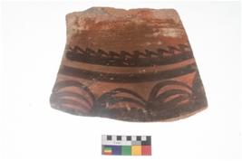 | Description / विवरण | Specimen of potsherd with black decorative geometric painting . |