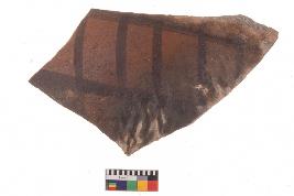 | Description / विवरण | Specimen of potsherd with decorative geometric Linear painting, Type Black on Red Ware . |