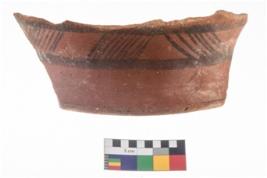 | Description / विवरण | Specimen of potsherd with black decorative geometric painting . |