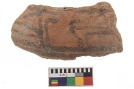| Description / विवरण | A fragment of a potsherd. It is reddish in colour with black decorative animal painting on it. |