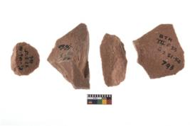 | Description / विवरण | It made up of a short flakes with sides trimmed. Marks of secondary flaking are present on the both the faces. It rained pebbly cortex on one side and irregular thin edge on the other. The dorsal is relatively flat. A patch of cortex near the section which is slanting to the dorsal .It is sub rectangular in shaped. |