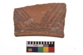 | Description / विवरण | Specimen of black on red ware with decorative geometric Groups of oblique strokes set in horizontal bands on the exterior painting. |