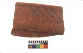 | Description / विवरण | Specimen of potsherd with black decorative geometric painting. Type Black on Red Ware . |