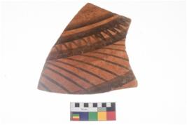 | Description / विवरण | Specimen of potsherd with black decorative geometric painting . |