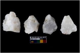 | Description / विवरण | There are n-4 of intact flake cores made up of Quartz. Some of them have bulge of percussion and some are flat flakes. |