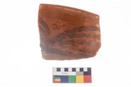 | Description / विवरण | Specimen of potsherd with black decorative geometric painting . |